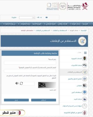 - الخطوة 1: الذهاب إلى موقع وزارة الداخلية القطرية خدمة الاستعلام عن الإقامات “من هنا“.