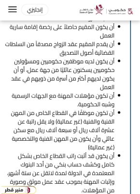 - ألا يقل راتب المقيم عن عشرة آلاف ريال قطري أو سبعة آلاف مع وجود سكن.